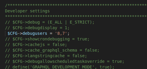 - Open your config.php, uncomment the first two lines of the developer settings section, and save the changes to your file.